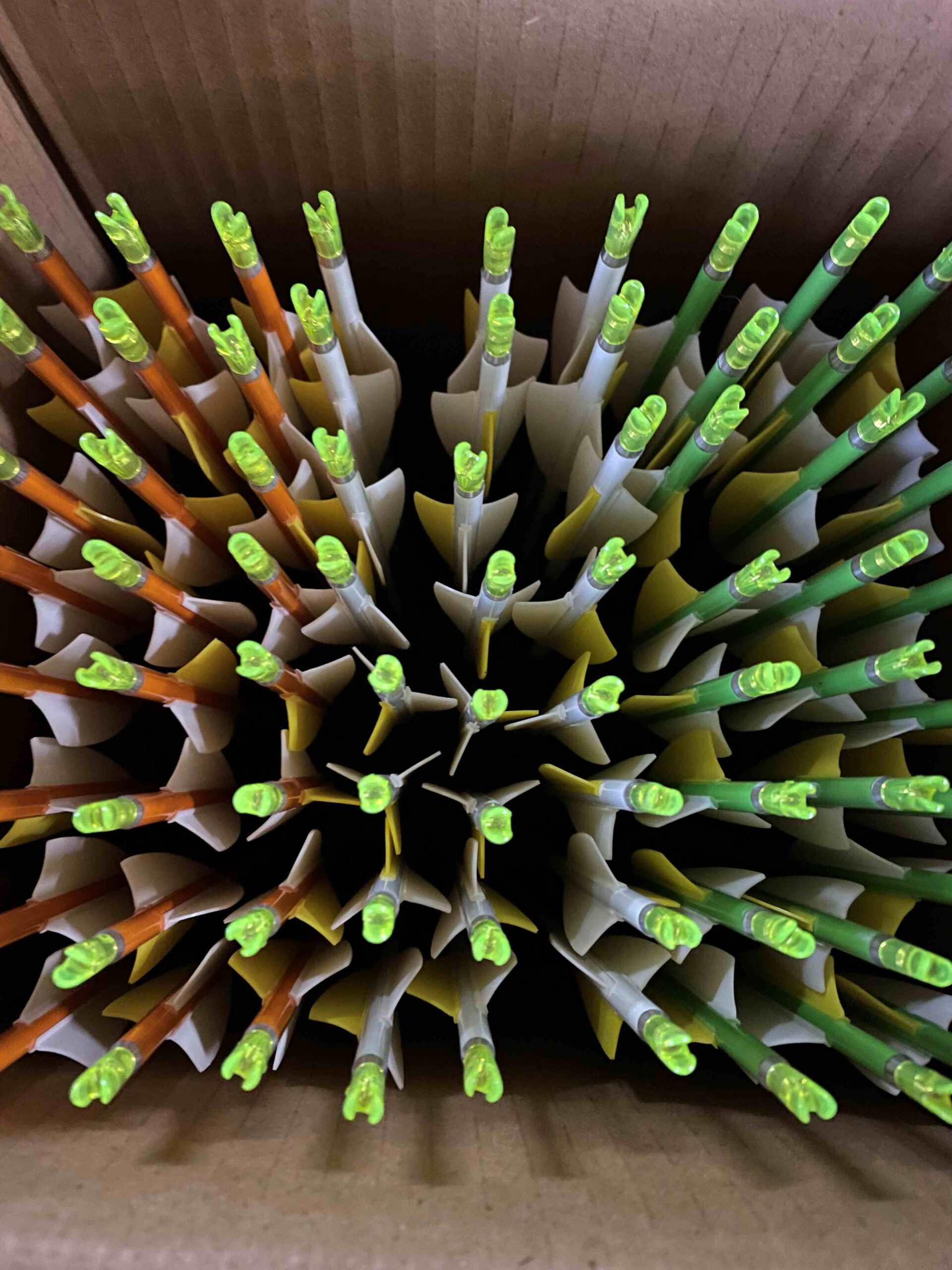 Der Pfeilschaft Pfeilschafts ist in grün, weis oder orange beschichtet.